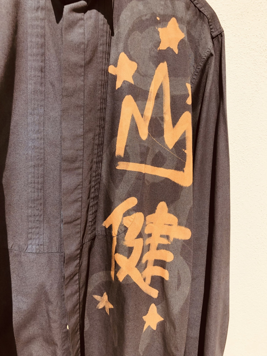 Elegantes Smoking Hemd mit Pinsel-Stoffbemalungen auf der Vorderseite, Verdeckte Knopfleiste, Biesen, Manschetten, Vintage, Unikat.